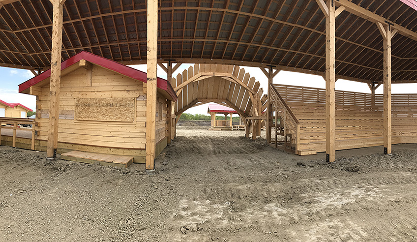 Constructed in the spring and early summer of 2012, the Frog Lake Arbor provided full-time employment for 26 and 5 part-time/casual positions. Not including indirect spin off employment and contracting positions. The project was completed on schedule for the annual powwow in July. Dreamcatcher worked with the community to achieve their vision. 37,000 sq/ft 4,000 person seating capacity